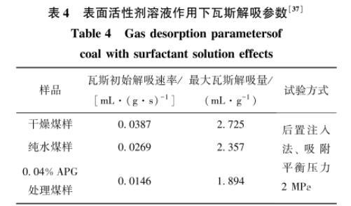 表4表面活性剂溶液作用下瓦斯解吸参数