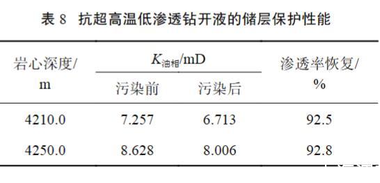 表8抗超高温低渗透钻开液的储层保护性能