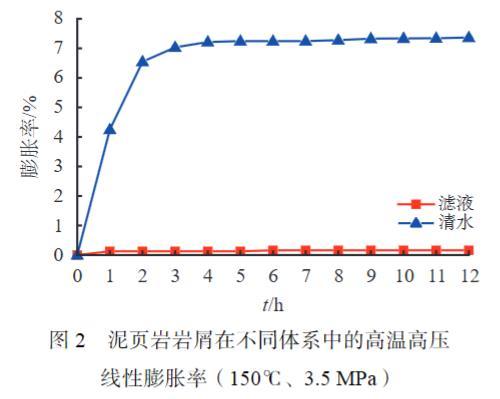 图2泥页岩岩屑在不同体系中的高温高压线性膨胀率(150℃、3.5 MPa)