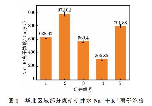 根据调研结果配制9组溶液,包括8组Na+、K+离子浓度不同的矿井水和1组纯水,溶液配比见表1。配制溶液时,取适量去离子水,向其中投加CaCl2、MgCl2、Ca(HCO3)2 控制矿井水硬度,向其中投加NaCl、HCl和NaOH控制矿井水的pH为7.5,向水溶液添加其他必需微量离子和杂质,静置2 h待用。