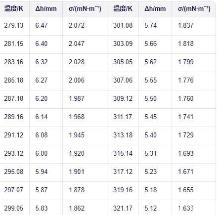 > 铂金板法测定不同浓度、温度、表面活性剂对氨水表面张力值(二)