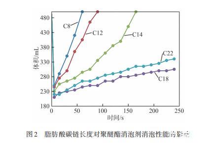 2.1脂肪酸碳链长度对聚醚酯消泡剂消泡性能的影响