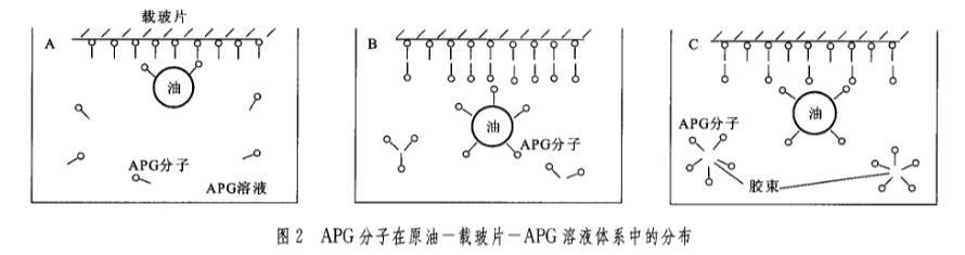 图2 APG分子在原油一载玻片一APG溶液体系中的分布