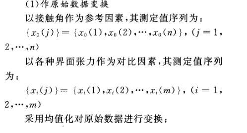 根据以上步骤对表1中的数据进行处理,得到各种界面张力与接触角问的灰关联度(表2)。