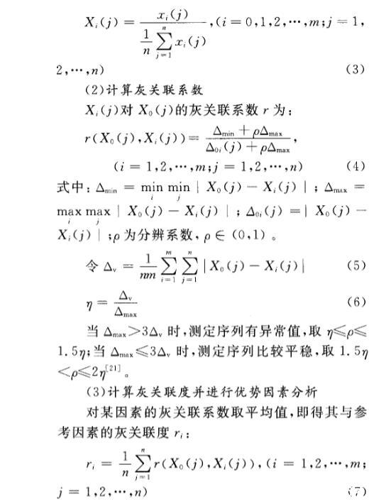 (3)计算灰关联度并进行优势因素分析 对某因素的灰关联系数取平均值,即得其与参考因素的灰关联度: