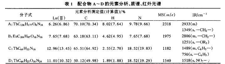 表1配合物A~D的元素分析、质谱、红外光谱