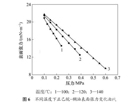 2.2.2温度和压力对正己烷-稠油表面张力的影响