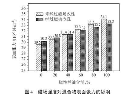 2.4磁场对极性与非极性烃油混合物表面张力的影响