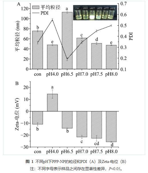 2.1 pH对PPP-NP粒径和Zeta-电位的影响