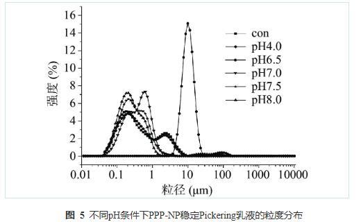 2.5 pH对PPP-NP稳定Pickering乳液粒径分布的影响
