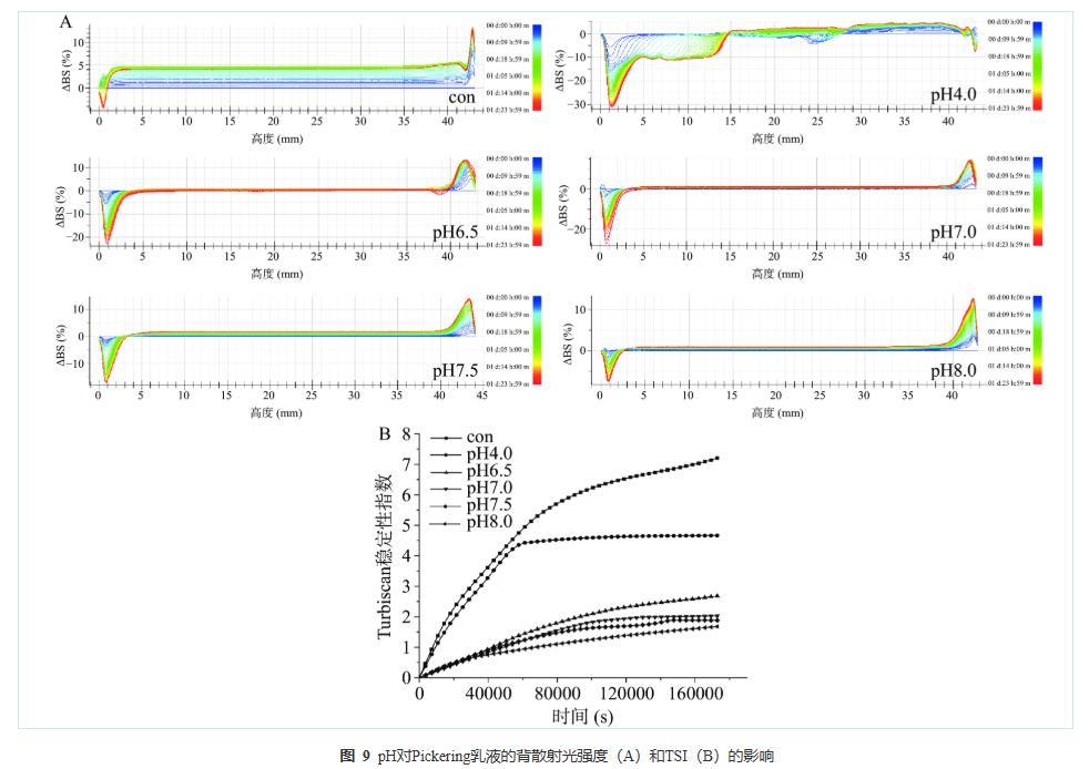 2.9 pH对PPP-NP稳定Pickering的背散射光强度和TSI的影响