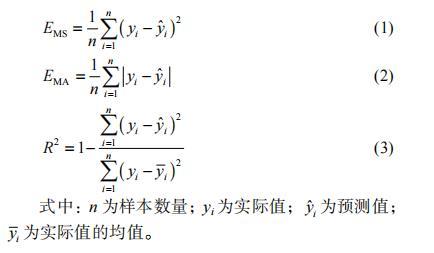 式中: n为样本数量; y_i 为实际值; ŷ_i 为预测值; ȳ_i 为实际值的均值。