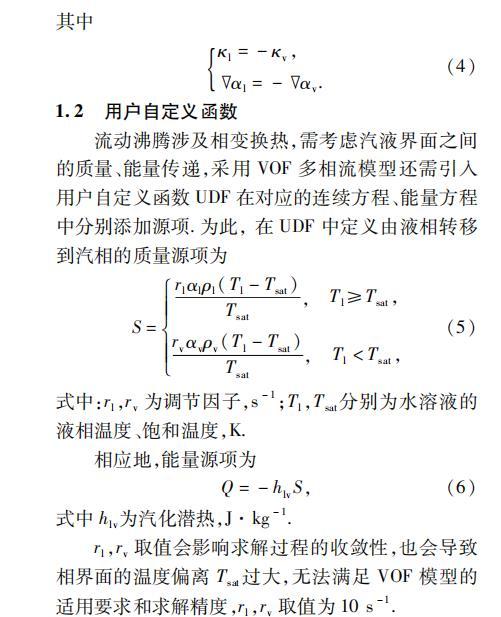 式中:rl,rv为调节因子,s⁻¹;Tl,Tsat分别为水溶液的液相温度、饱和温度,K。