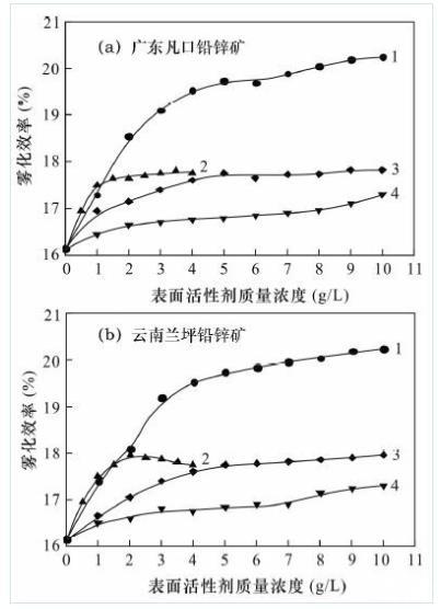 2.4表面活性剂不同浓度对铅锌矿实样悬浮液雾化效率的影响