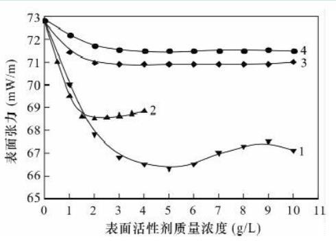 图1表面活性剂不同浓度与水溶液表面张力的关系