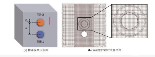 图2   物理模型示意图与运动颗粒附近重叠网格