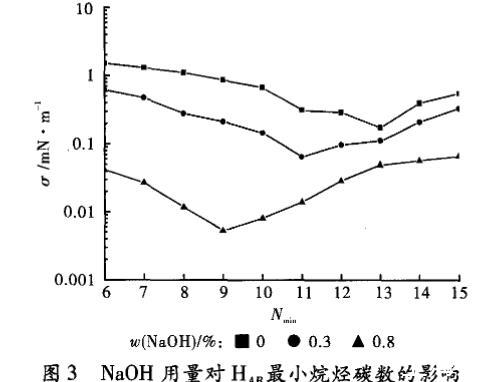 NaOH对表面活性剂体系碳数最低值的影响: