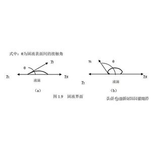 不同的液体在同种固体表面上,得到不同的接触角。接触角小的液体表面张力小。接触角的大小衡量着固体表面与液体之间的润湿性。图1.9(a)中的接触角小,表示固液间的润湿性好。而图1.9(b)中的接触角大,表示固液间的润湿性差。