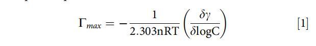 Γmax说明了表面活性剂分子在空气-水界面上的累积,可以使用吉布吸附方程计算[73]
