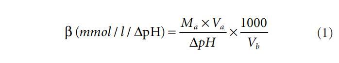 式中,Ma是酸的摩尔浓度,Va是酸的体积(单位:毫升),Vb是缓冲液的体积(单位:毫升),ΔpH是pH单位的变化。