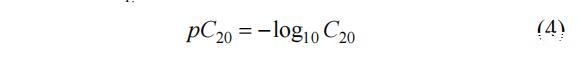 式(4)中给出的pC20值(C20是将溶剂表面张力降低20 m所需的浓度∙纳米−1[27]),随着α1的增加而增加。