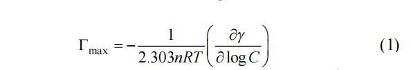 空气/水界面吸附的有效测量方法是通过表面过剩量,Γmax(mol∙m-2),通过吉布斯吸附方程计算[27]: