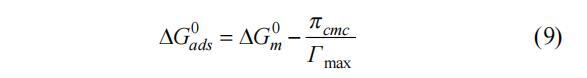 使用公式(8)[32]计算在cmc下获得的最大吸附摩尔自由能Gmin: