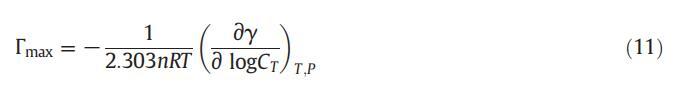 借助吉布斯吸附方程,XVDEVIOS官方下载免费版可以使用公式(11)[62]计算表面活性剂在空气-溶液界面的最大吸附量: