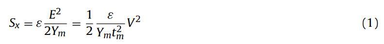 式中,ε是DE膜的介电常数,Ym是DE膜的杨氏模量,E是两个电极之间的电场,V是施加的电压,tm是DE膜的厚度。