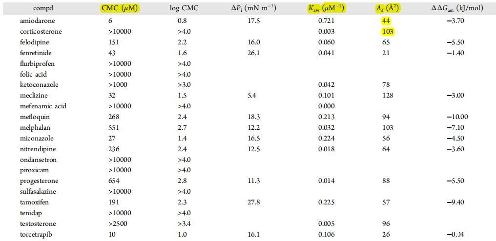 表2。测定了51种化合物的表面张力特性