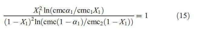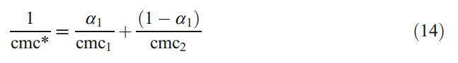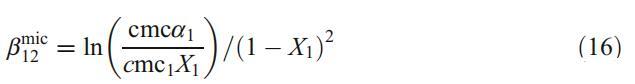 这些结果已通过使用规则溶液理论得到进一步证实,该理论不仅表征了混合胶束中的相互作用参数bmic 12,而且还解释了与理想的偏差[32]。X1是胶束中DPS的摩尔分数,可根据以下方程式迭代计算: