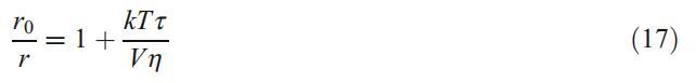 其中r0是在没有旋转自由度的情况下获得的发射各向异性的极限值,k是波尔兹曼常数,T是温度,τ是荧光团激发态的平均寿命,V是探针的有效分子体积,h是探针周围的粘度。从等式17可以看出,r值越高,刚性越高,反之亦然。