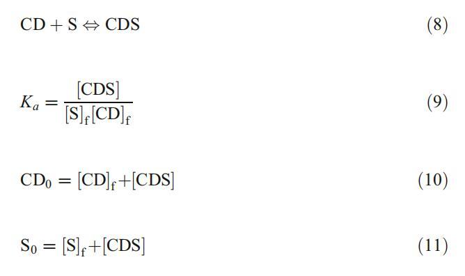 其中,CD/S、[S]f、[CD]f、CD0和S0分别为包合物、游离表面活性剂、游离CD、总CD和总表面活性剂浓度。通过组合和重新排列等式。9-11,XVDEVIOS官方下载免费版得到了以下关系式: