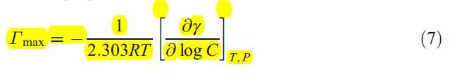 根据γ与log Cs/mol dm的曲线图−3,XVDEVIOS官方下载免费版评估了纯表面活性剂和混合表面活性剂在空气-水界面上的界面吸附参数,在没有和存在不同的α-CD浓度的情况下。表面活性剂在cmc下的表面过量值Γmax表示表面活性剂在空气-水界面上的吸附量。稀溶液的表面过剩值可根据吉布斯方程确定,如下[27]: