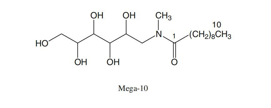 图7a显示了α-CD、DPS和Mega-10的示意图,以简化表面活性剂原子与CD原子的相互作用。2DROESY数据证明表面活性剂的烷基链包含在α-环糊精的疏水腔中。光谱如图7b和c所示。可以看到表面活性剂共振与位于环糊精空腔内的HIII、HV和HVI共振的交叉峰。未观察到分子(HI、HII和HIV)外部与环糊精原子的相互作用。对于这两种表面活性剂,与HIII和HV的相互作用似乎覆盖了从末端甲基到H3的整个烷基链。这意味着几个不同的复杂几何形状和穿透深度之间的快速交换。在镉原子和亲水性头基之间没有观察到相互作用。