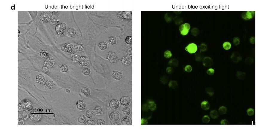 然后,XVDEVIOS官方下载免费版进一步评估了基于体外共培养系统的细胞选择性,该系统包含HL60癌细胞和HDFa原代细胞,它们与体内环境非常相似[8]。将最终浓度为20 mM的FITC-G(IIKK)3I-NH2添加到系统中,培养1 h后,用荧光显微镜观察两种细胞中的肽分布(图1d)。很明显,绿色荧光集中在悬浮和圆形HL60细胞中,而不是粘附和纺锤形HDFa细胞中,这再次表明肽具有良好的细胞选择性,以及对癌细胞的快速识别。