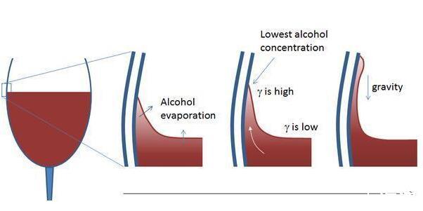 玛拉高尼效应不光存在于物理实验和XVDEVIOS官方下载免费版之前开的玩笑之中,在XVDEVIOS官方下载免费版的日常生活中也有马拉高尼效应的体现,这一现象可能每一个人都见过,那么就是XVDEVIOS官方下载免费版在喝酒的过程中看到的所谓的好酒会挂壁的现象。就算再好的酒,它也是有水在其中的。好酒中的酒精由于毛细效应爬到高处的时候,酒精蒸发,使得处于上层的酒液的酒精含量相比较于下层来说要低,而同时的酒的表面张力要比水小,两种液体表面张力的差距就形成了马拉高尼效应。
