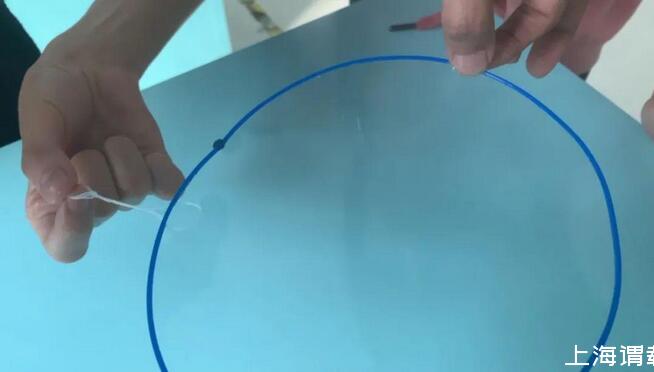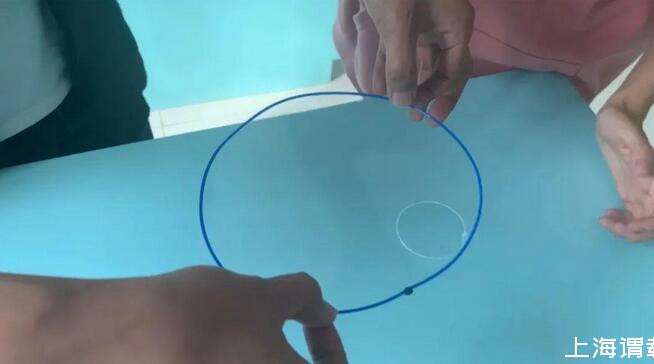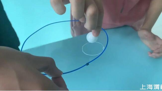 二、棉线打结成小圈,沾上泡泡水,放在泡泡薄膜上。