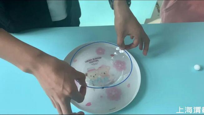 一、盘子中倒入泡泡水,塑料圈放入泡泡水中拿起,形成泡泡薄膜。