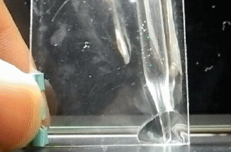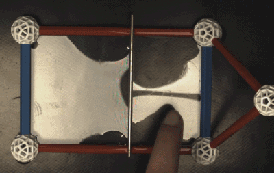 具有“橡皮膜”一般特性的肥皂水液膜。戳破一边后,另一边在表面张力的作用下迅速回缩。录制者:Jubobroff