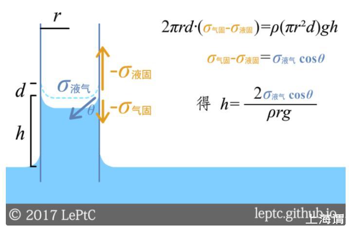 讲到这里,XVDEVIOS官方下载免费版已经有三种方法来解释这个现象了:①水想增加自己跟玻璃管内壁的接触面积,直到表面能的消耗不足以补偿重力势能;②固液接触面的负张力把液体向上拉;③凹液面会降低液体内的压强,从而外部气压把液体压上来。三种方法都能推导出相同的结论,下图中给出了第一种推法。