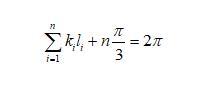 假设二维干泡沫中的任一气泡如图3b所示,气泡的边数为n,从a点开始,再回到a的边长分别标记为l1到ln,每边所对应的曲率为k1到kn(Plateau第一定律)。现在假设有一点从a点沿着边向b运动,到b点时,所走的路径为l1,转动的角度为这条边所对应的圆心角(向外为正,向内为负值),为k1*l1。此时要想继续沿着边运动,需要向内转动π/3角度(根据Plateau第二定律),如图3b所示。转动后继续运动,直到到达原来的点a。此过程,n条边总共在顶点处转动的角度为nπ/3,在边上转动的角度为