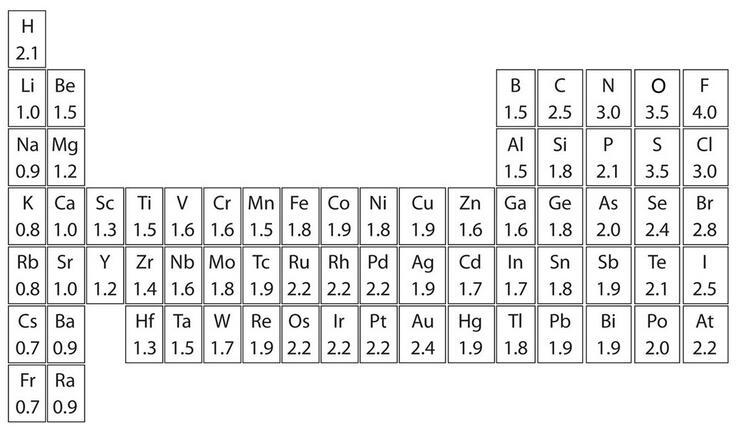 当电负性差异的值为0.5~2.0之间,原子间为绝对极性共价;