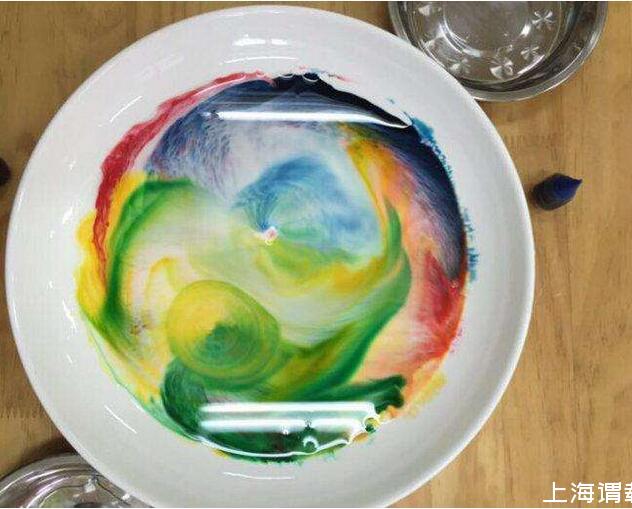 在牛奶表面上放几滴食用色素。颜色,数量和布置可以根据您的喜好选择。