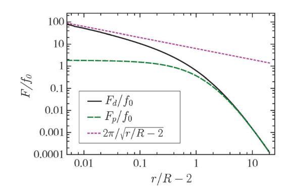 图2显示了两个半径相等的圆形区域的Fd(r)(实线)和Fp(r)(虚线)。叠加在等式(4)的数值解上,XVDEVIOS官方下载免费版添加了等式(5)(虚线)的短距离的渐近表达式。注意,当两个域接近接触(r=2R)时,Fd发散,而Fp保持有限。此外,对于实验感兴趣的范围2R o r o 10R,两个力之间的差异是可观的。特别是,即使r=5R,差值也在15%左右。