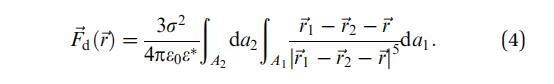 该力沿中心线分布,其大小仅取决于域之间的距离r。Fd(r)没有解析表达式,因此必须进行数值计算。然而,对于单分散系统的特殊情况(所有域半径等于R),Wurlitzer等人22发现该力的渐近行为为: