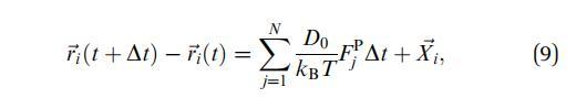 其中,FPj是由于所有其他N 1圆盘作用在圆盘j上的直接总力,D0是圆盘扩散系数,kB是玻尔兹曼常数,T是温度,%Xi是源于溶剂-粒子碰撞的粒子i的随机位移矢量。%Xi从具有零均值和协方差矩阵的高斯分布中采样: