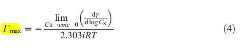表面活性剂的最大界面过量浓度(Γmax)由吉布斯吸附方程估算如下[11]:
