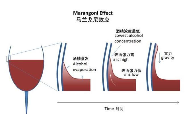 所以说附着力、表面张力和重力这三个力共同作用形成了酒的挂杯现象,而酒的挂杯现象是怎么来的?实际上这个说法是个“舶来品”,最早来源于葡萄酒,早在1855年,也就是160多年前,英国物理学家詹姆斯•汤姆森发现红葡萄酒挂杯现象,随后意大利物理学家马兰戈尼通过研究将他的研究成果发表,在1865年,发现挂柸现象十年以后发表,从此以后大家就把葡萄酒的挂杯现象统称为马兰戈尼效应。