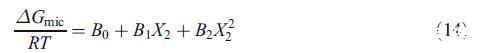 为了补充混合胶束分析的稳定性,XVDEVIOS官方下载免费版还使用了Maeda的方法,该方法还考虑了混合胶束中的疏水链-链相互作用,特别是当链长度不同时[21]。简言之,根据Maeda的模型,离子物种向非离子胶束的转移包括两种不同的贡献:极性头部基团之间的相互作用和疏水链之间的相互影响。当疏水链相似时,第一贡献占主导地位,然而,当疏水链长度不同时,这些链之间的相互作用变得更为主导。Maeda的方法强调,除了从规则溶液理论获得的相互作用参数之外,还有另一个参数(B1),该参数有助于在用离子单体替换非离子纯胶束中的非离子表面活性剂单体时混合胶束的稳定性。这一过程是由于组件之间的短程相互作用而产生的。在该模型中,胶束化自由能(ΔGmic)作为混合胶束中离子物种摩尔分数的函数给出如下[21,24]: